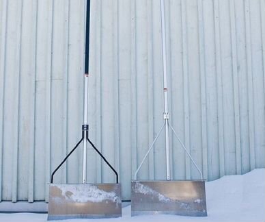 Используйте лопату с пластиковым лезвием, чтобы не повредить поверхность крыши.