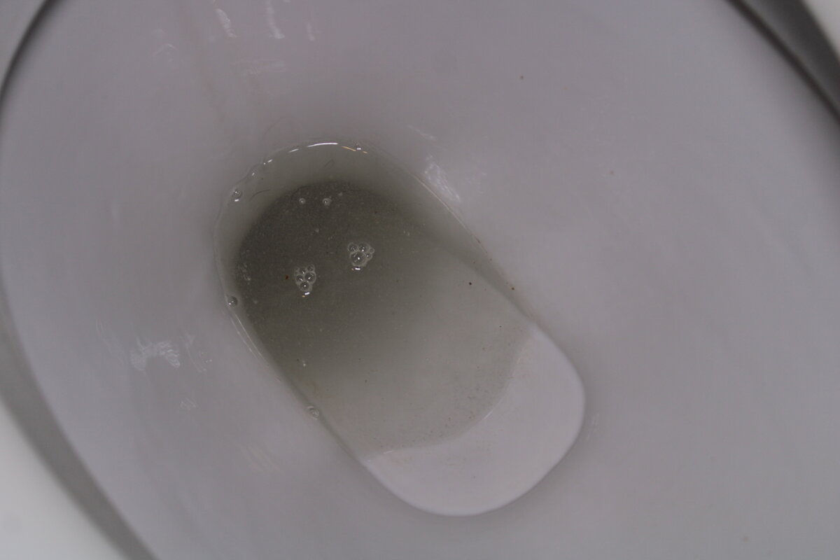 Перед началом процесса пустите воду в унитаз, чтобы поверхность была влажной.