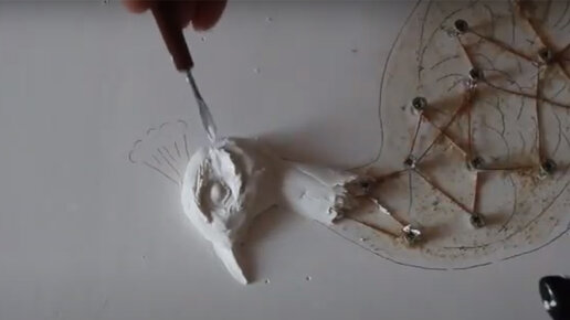 Аккуратно нанесите готовую массу на стену, следуя контурам изображения сакуры. Вадотельно пропустите спонжем по всей поверхности, чтобы создать эффект неровного рельефа.