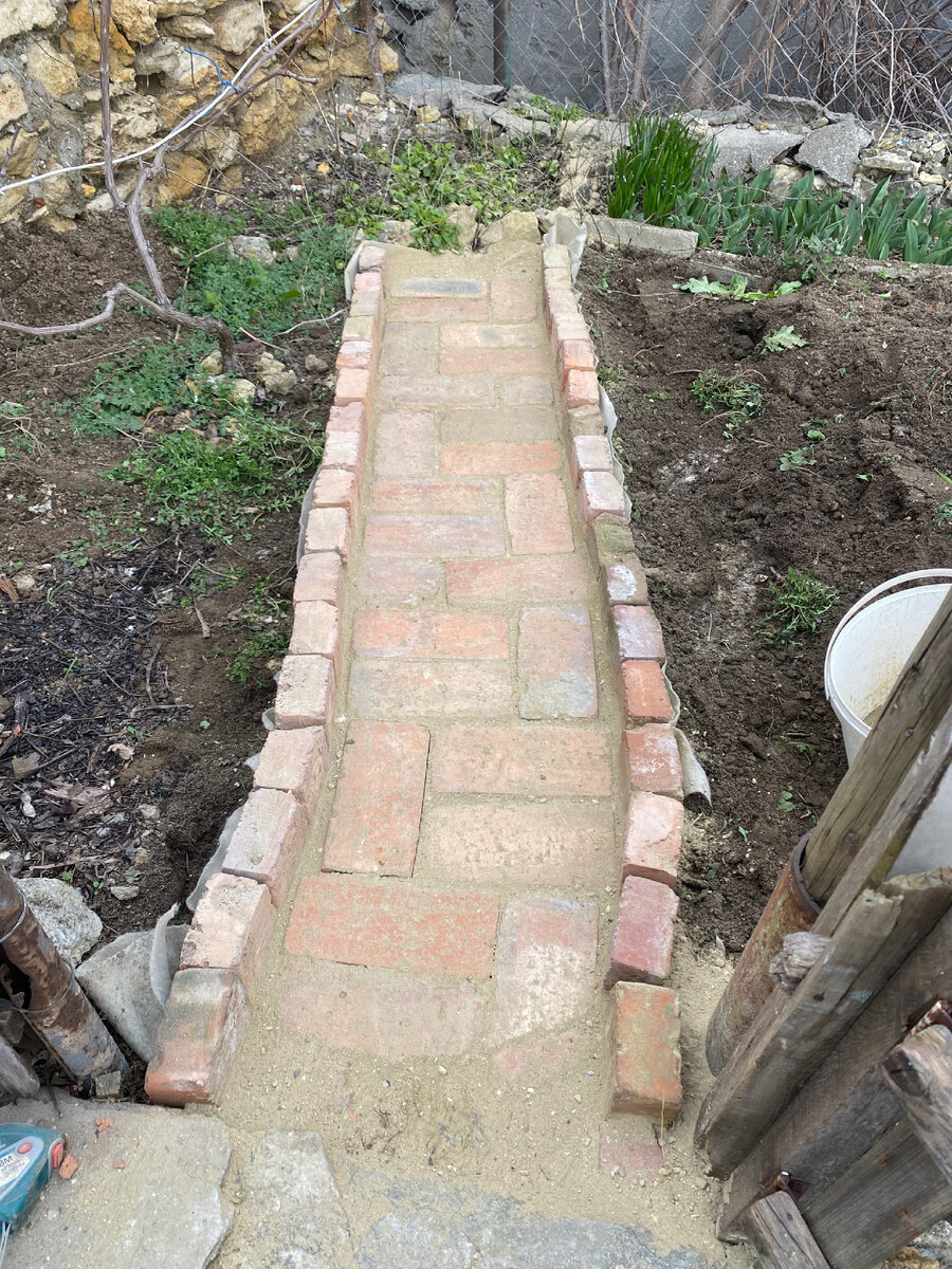 Креативная дорожка из старого кирпича на сухую цементную смесь!