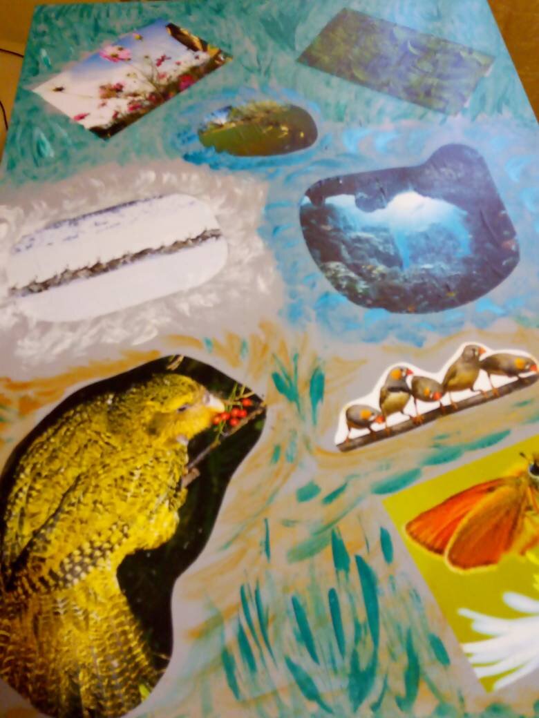 Примените технику наклеивания и закрепления изображения на столе.