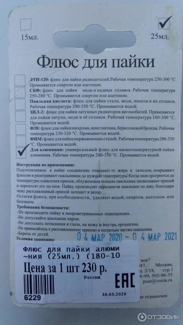 Храните флюс в герметичной упаковке в прохладном и сухом месте, чтобы сохранить его свойства на долгое время.