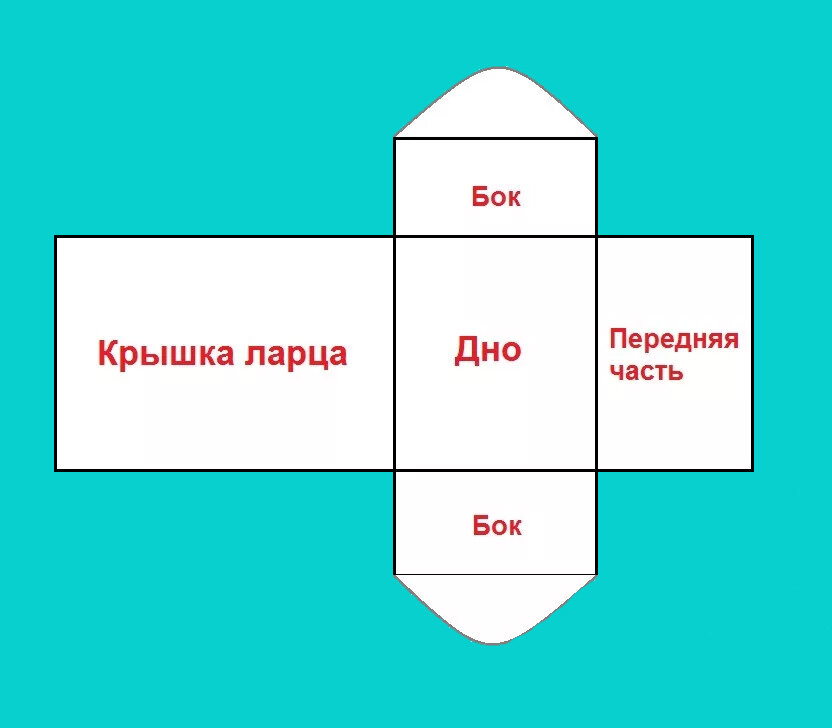 Вырежьте все детали сундучка по схеме, используя ножницы или нож для более точной работы.