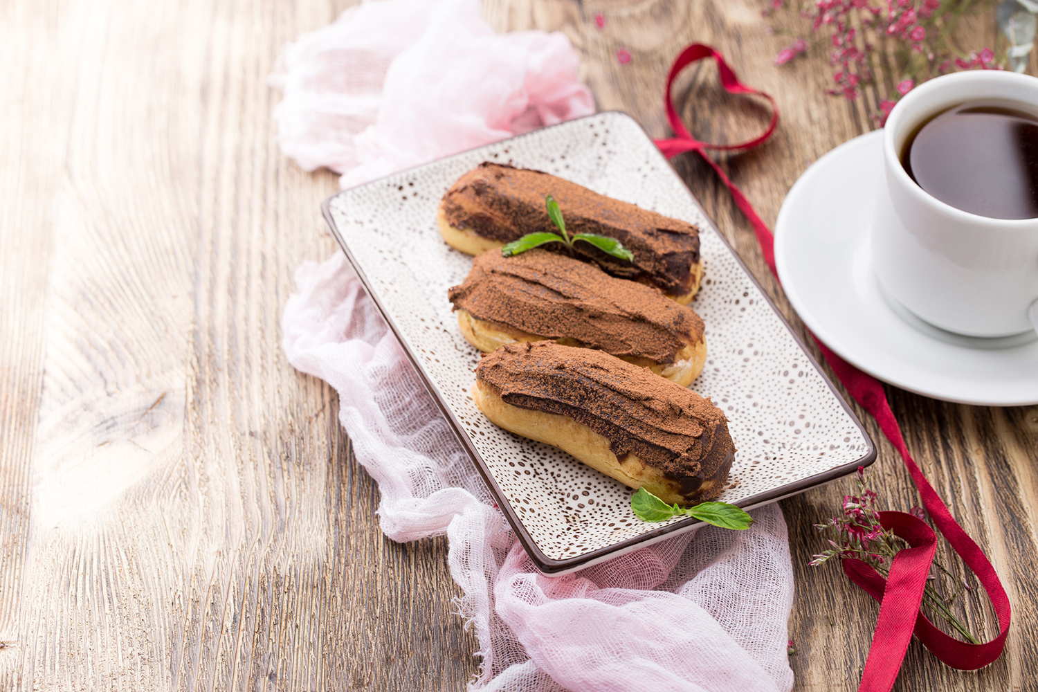 При подаче на стол, укажите, что эклеры своего производства - это гарантия вкуса и качества.