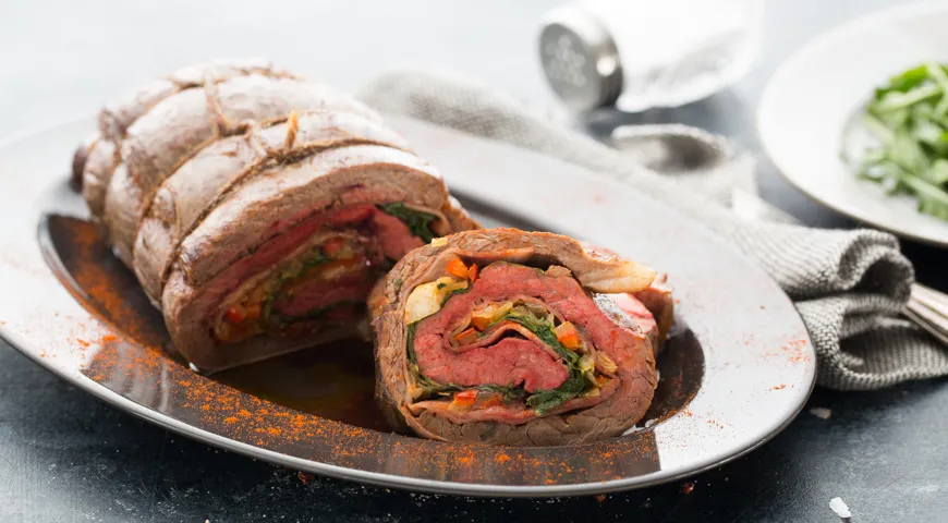 Не забудьте прокалить говяжий рулет в духовке перед запеканием, чтобы он сохранил форму и не распался.