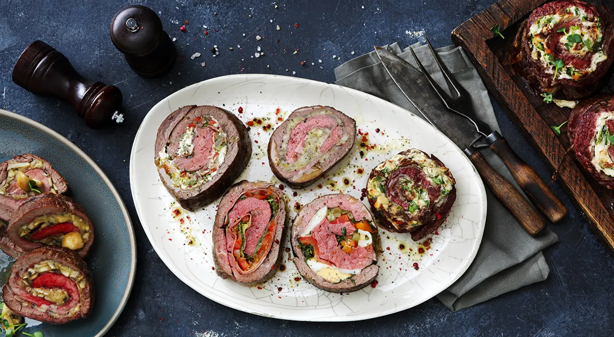 Праздничный мясной рулет из говядины с начинкой