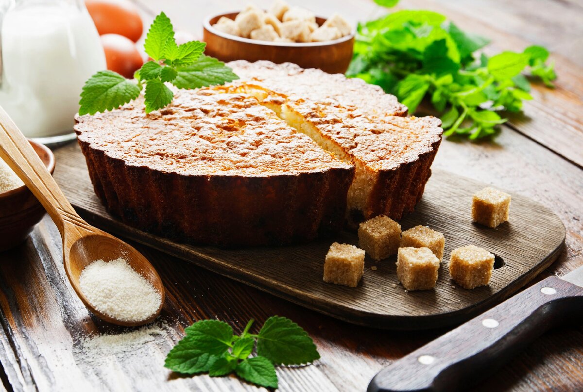 Выпекайте манник при 170-180 градусах – так он будет равномерно пропечен и получится нежным внутри и румяным снаружи.