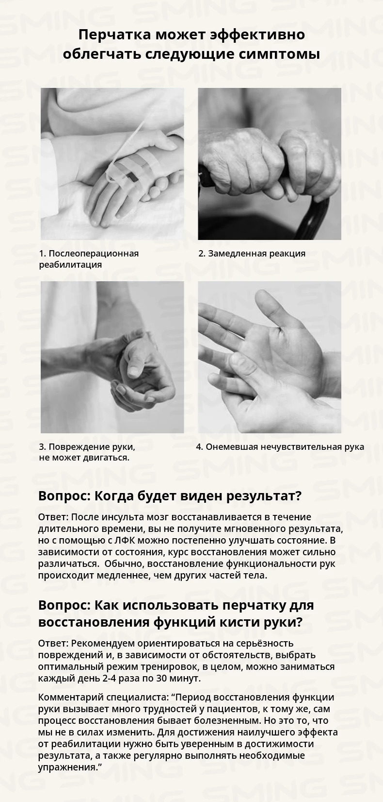 Не бросайте домашние занятия и упражнения даже после достижения определенных результатов. Поддерживайте желание развиваться и регулярно занимайтесь, чтобы сохранить восстановленные функции руки и добиться еще больших успехов.