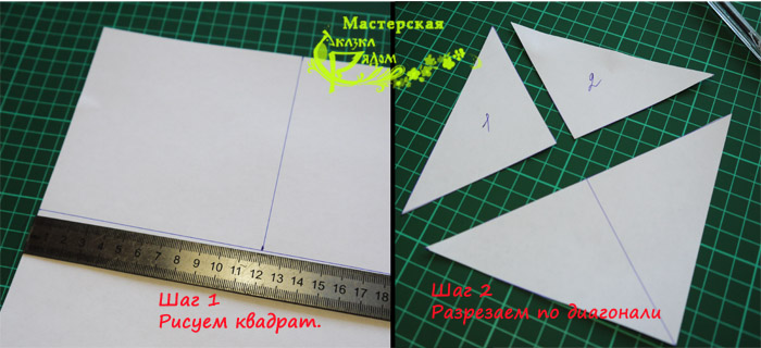 Разделите каждый квадрат на семь частей в форме геометрических фигур: один большой квадрат, пять треугольников и один параллелограмм. Используйте рулетку и линейку для точности.