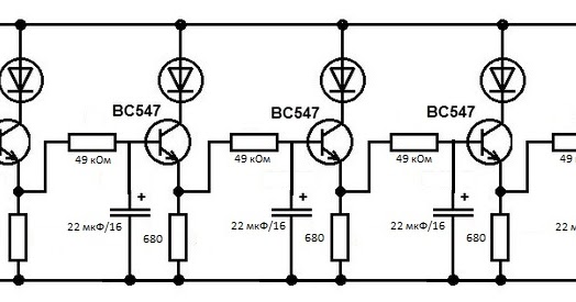 Как сделать схему бегущих огней на светодиодах и биполярных транзисторах, описание работы, + пример