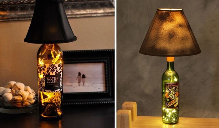 Самоделка из стеклянной бутылки. Настольный светильник своими руками. Как сделать светильник.