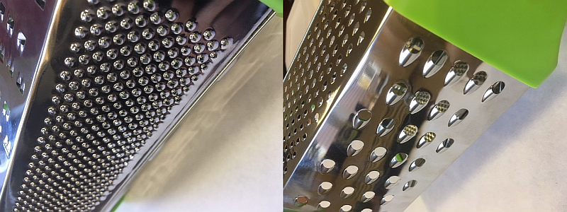 Замерьте размеры овощей, которые вы обычно тираете. Это поможет определить нужные размеры отверстий на терке.