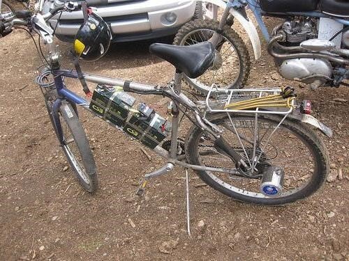 Необычный трехколесный ВелоБАЙК, сделанный из двухколесного велосипеда.