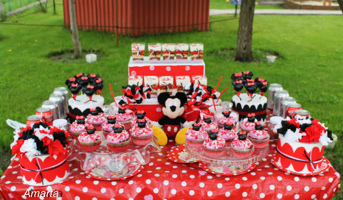 Не забудьте сделать фотозону: установите фон с изображением Минни Маус и приготовьте реквизит в виде ушек, глазных паттернов и прочих атрибутов.