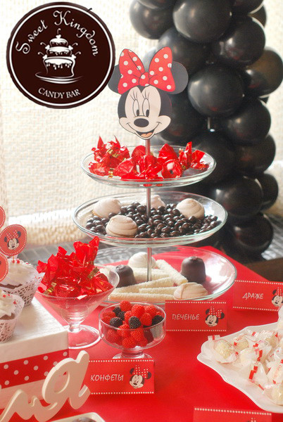 Добавьте оригинальные акценты: например, украсьте кэнди бар знаками с изображением Минни Маус или подвесками в форме ее шляпок и бантиков.