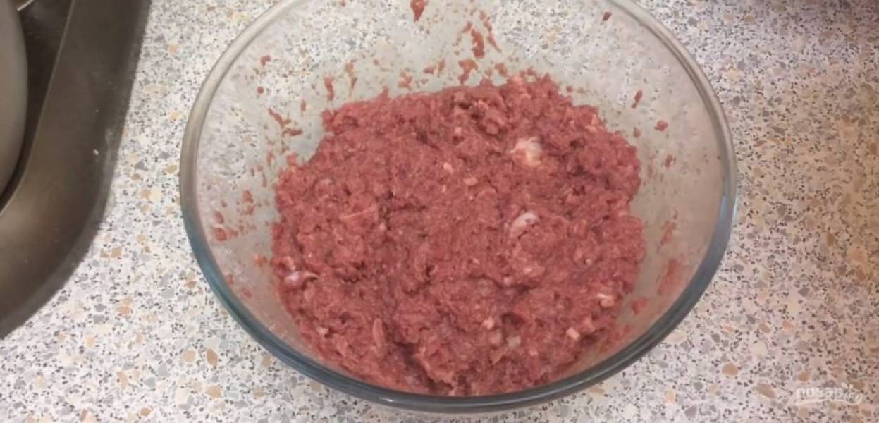 Хорошо перемешайте фарш, чтобы специи равномерно распределились.