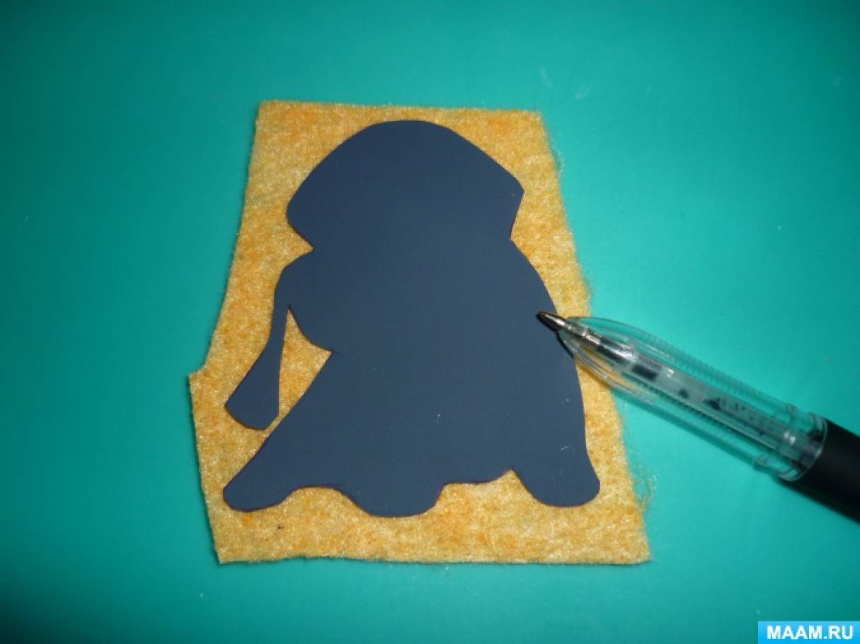 Выберите качественный фетр различных цветов: для тела мопса - светлый, для мордочки - темный.
