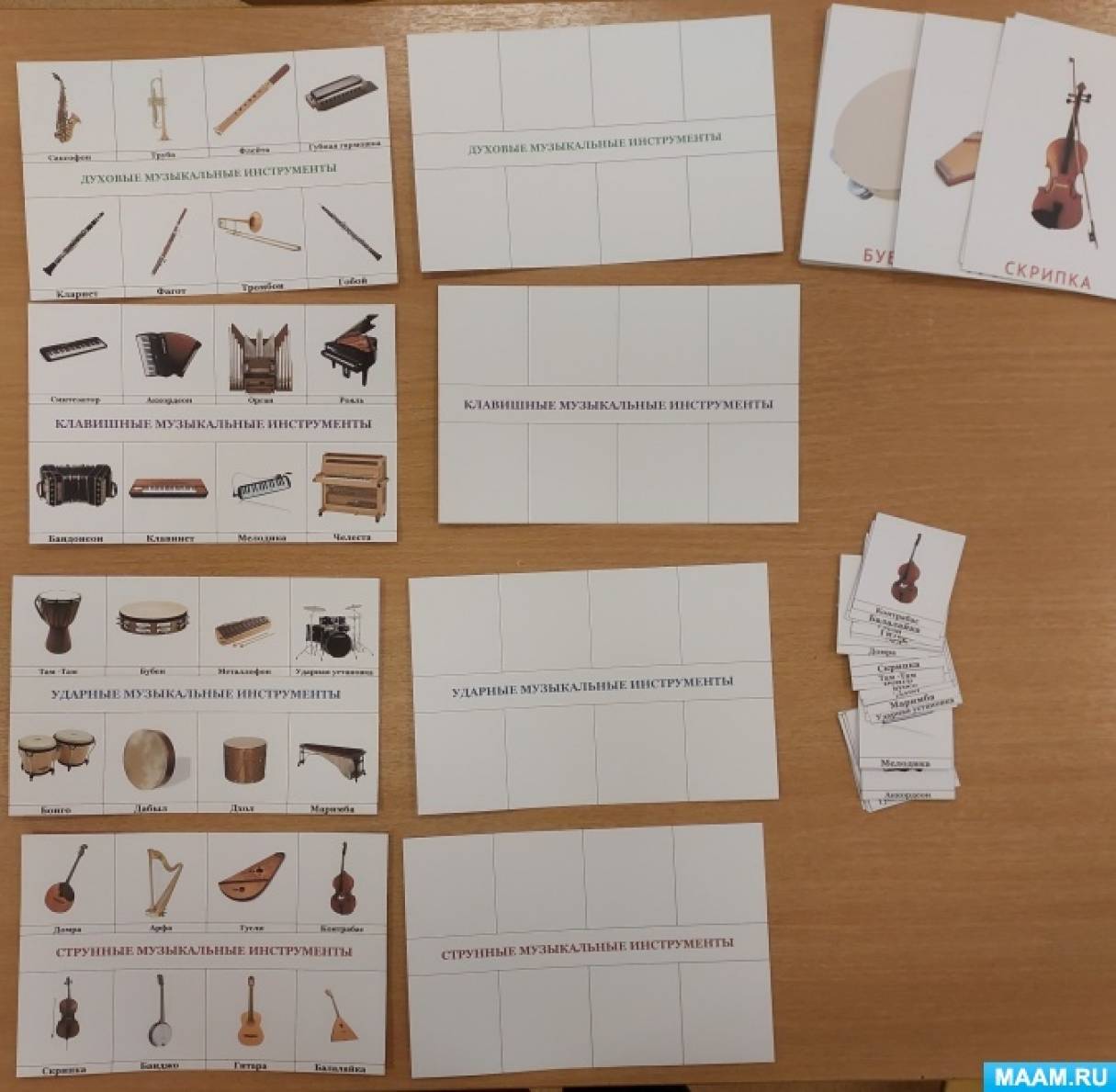 Изучите различные музыкальные инструменты и символы, чтобы правильно их изобразить на карточках.