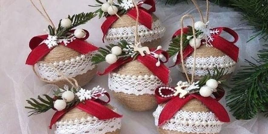 Создайте красивые подвески для елки из пряжи разных цветов.