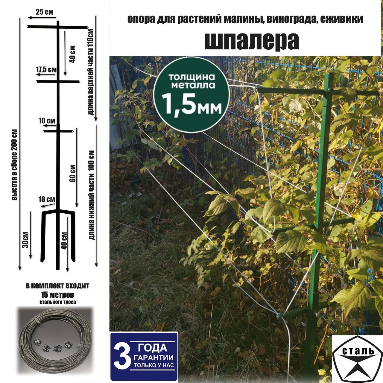 Супер удобная шпалера для ежевики, выдержит ветер, не мешает укрытию