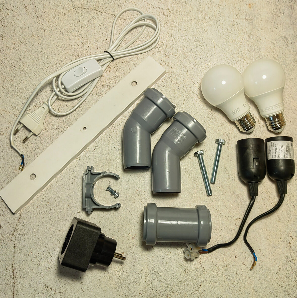 Подготовьте необходимые материалы: провода, лампы, выключатель и прочие элементы.
