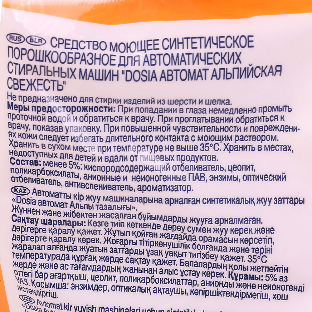 Отзыв о стиральном порошке Дося Колор и Альпийская свежесть - состав