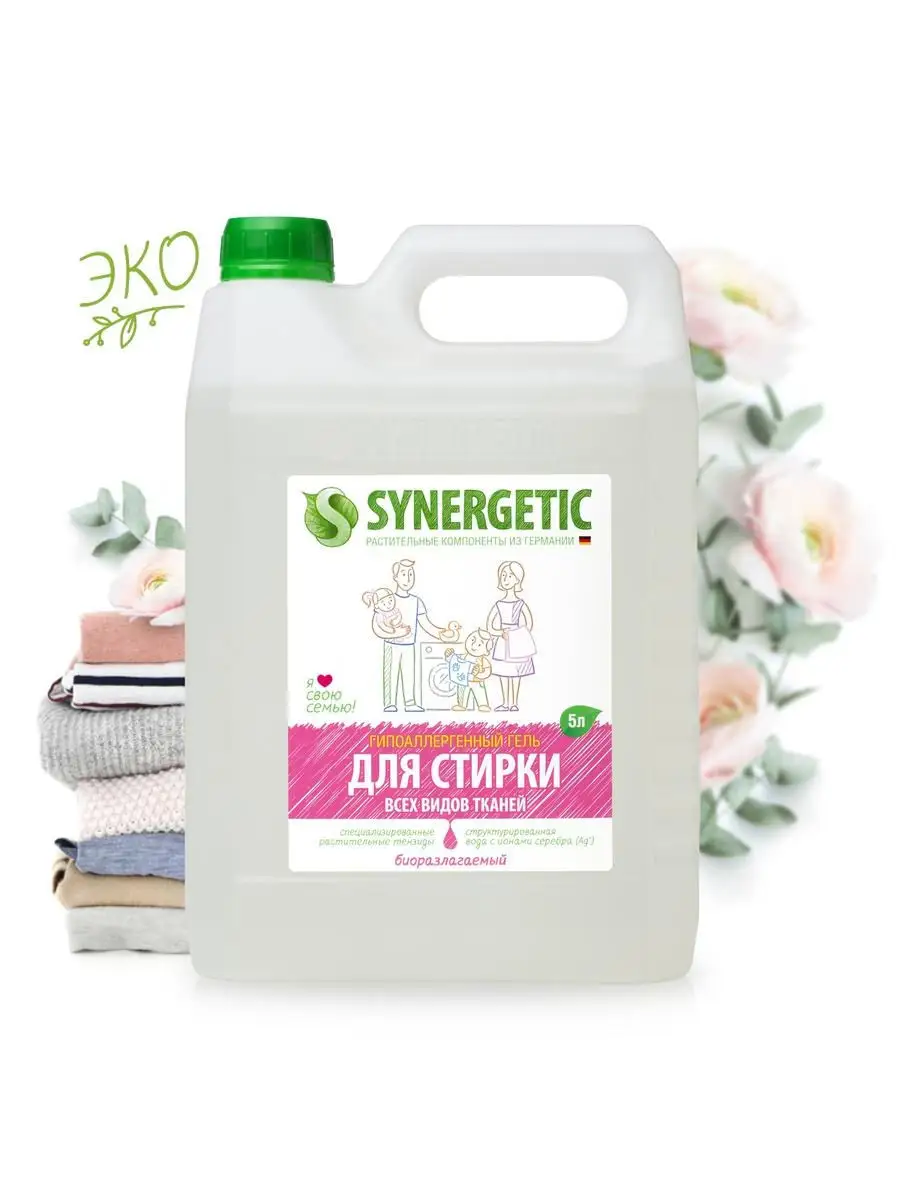Предлагаем гель для стирки synergetic, который обеспечивает эффективное и безопасное очищение всех видов тканей. Благодаря его особенной формуле, он способен удалить самые сложные пятна и придать вашей одежде максимальную свежесть и чистоту.