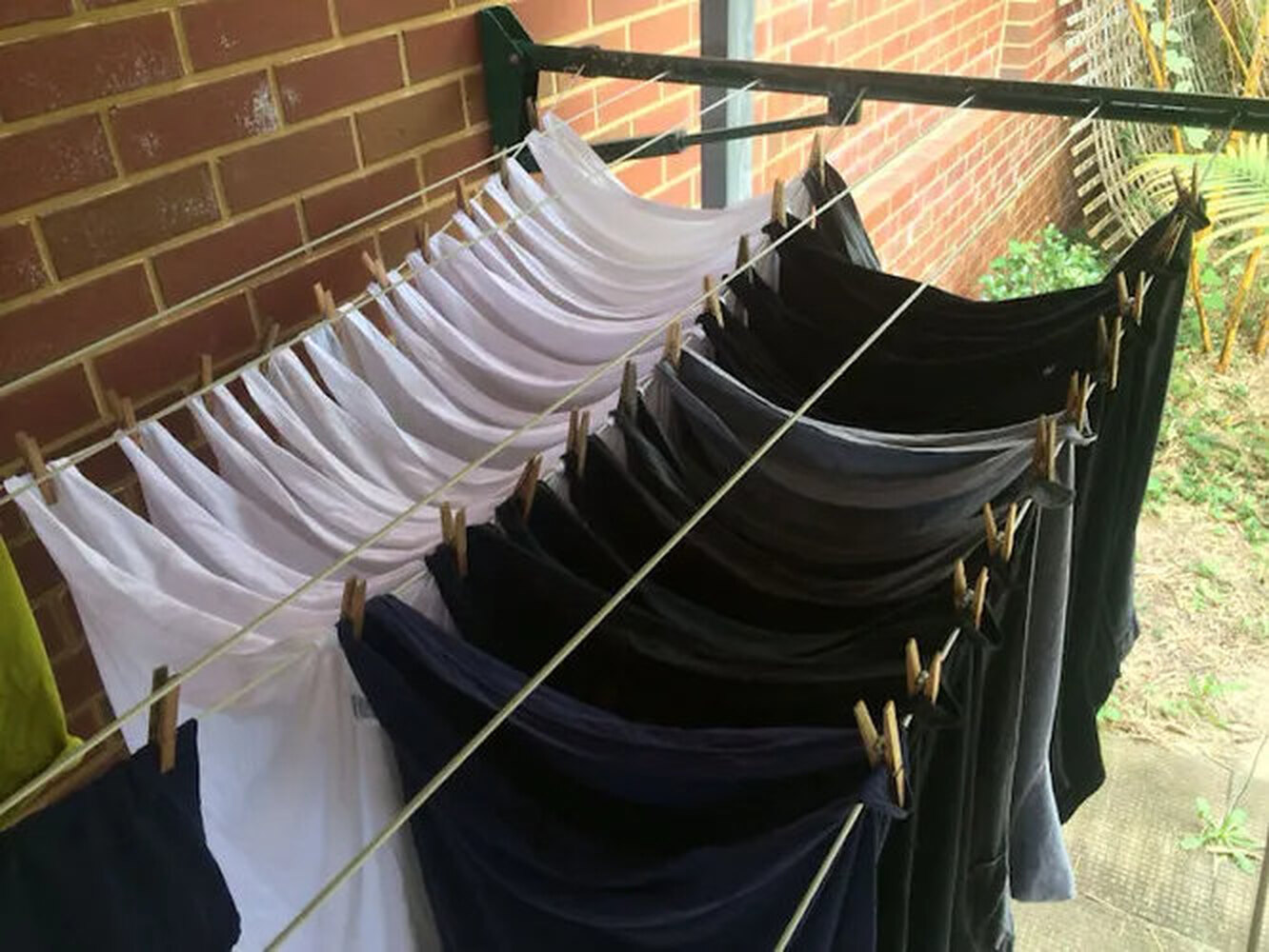 Не перегружайте веревку бельем, оставляя достаточно места между вещами для нормальной циркуляции воздуха.