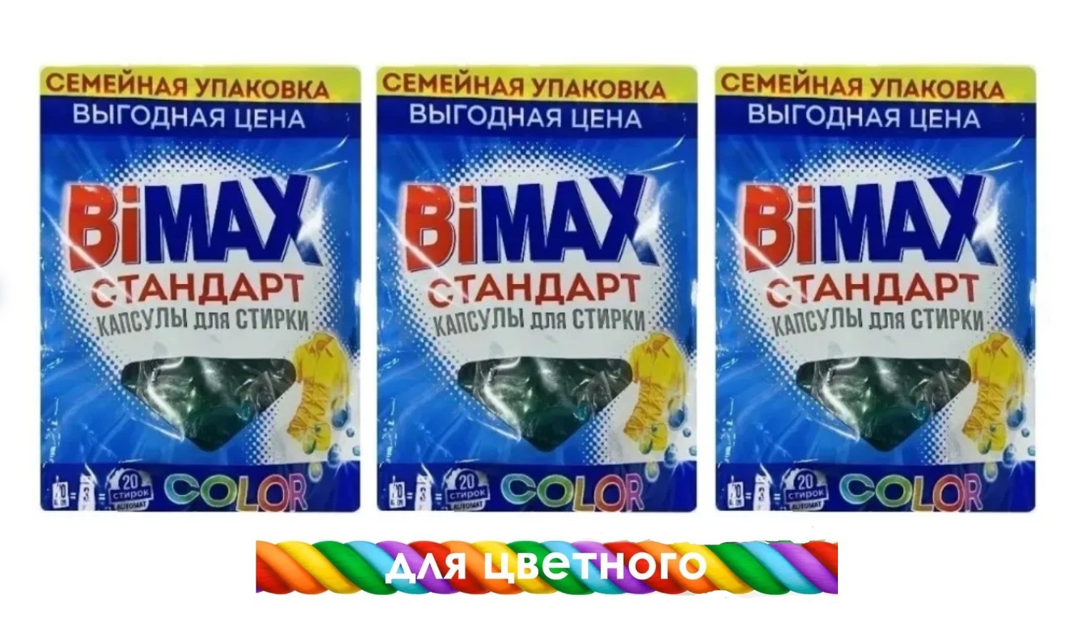 Используйте капсулы Bimax Color только для стирки цветной одежды.
