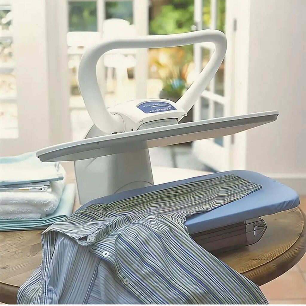 Используйте гладильную доску в вертикальном положении для глажки белья. Придавите белье к поверхности доски и аккуратно проведите катком, чтобы удалить складки.