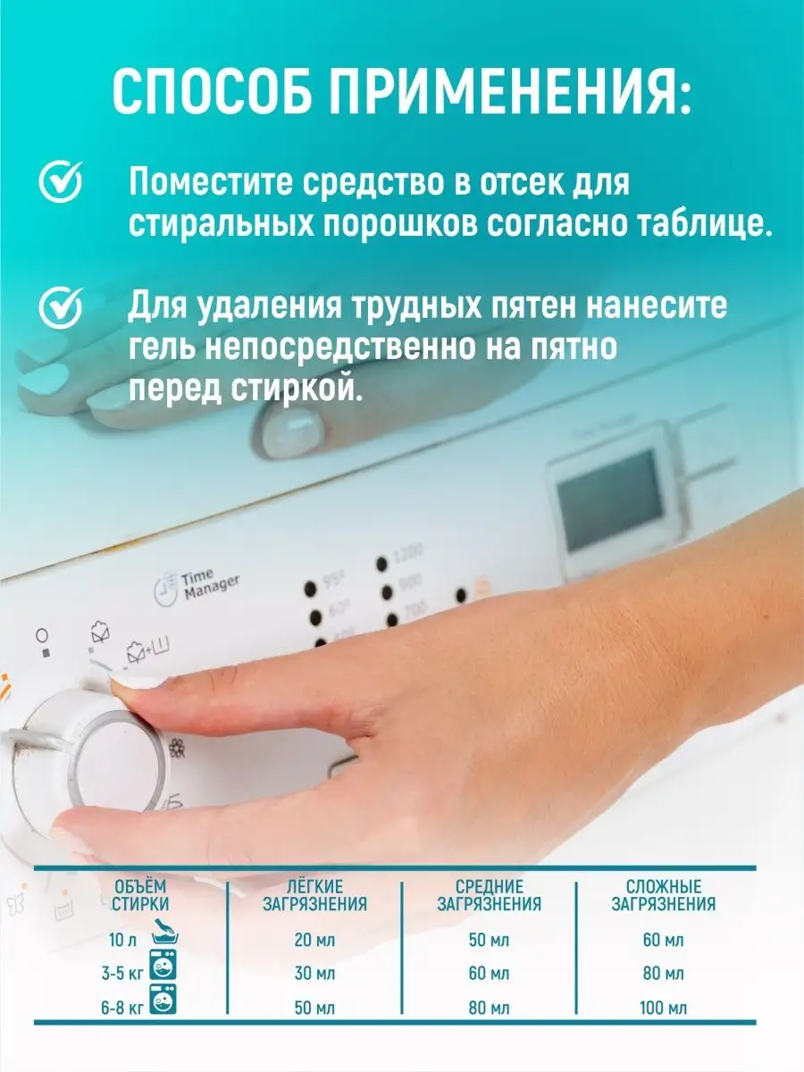 Не загружайте машину слишком полную, чтобы концентрат мог равномерно проникнуть в ткани и обеспечить лучший результат стирки.