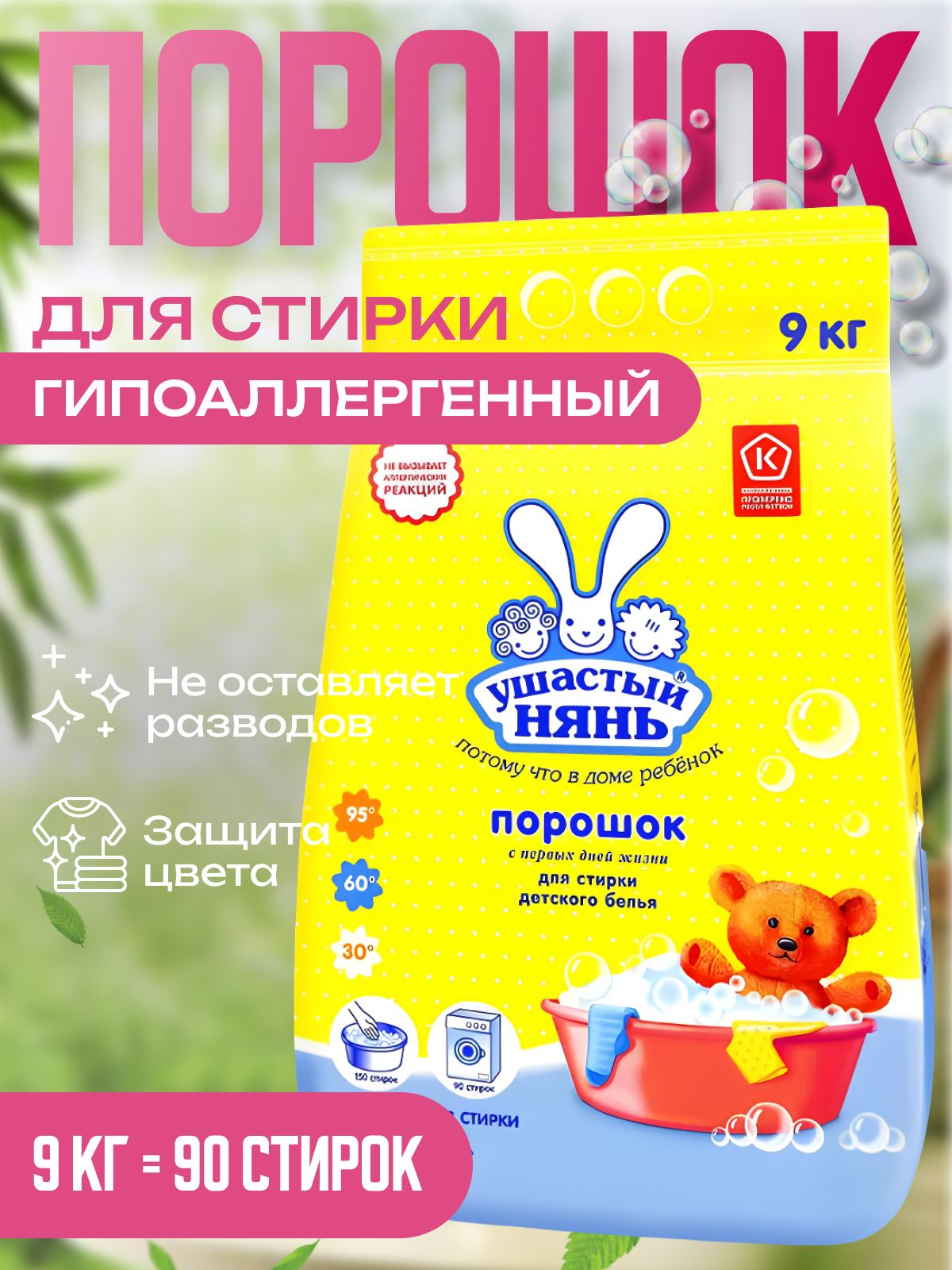 Стиральный порошок для детского белья Ушастый нянь, стирка одежды, безопасность, отзывы, обзор, цена