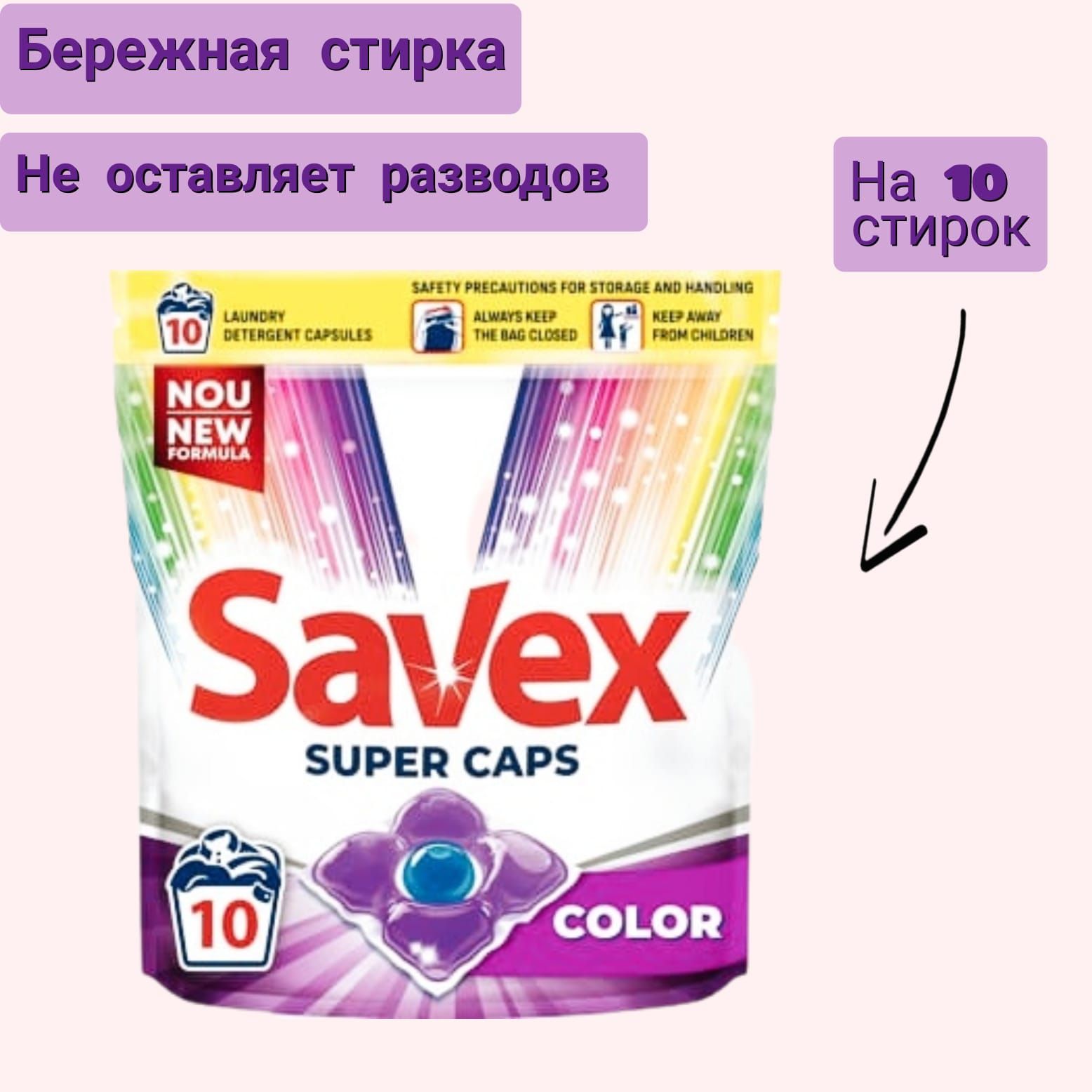 Используйте капсулу savex вместе с другими моющими средствами для достижения наилучших результатов стирки.