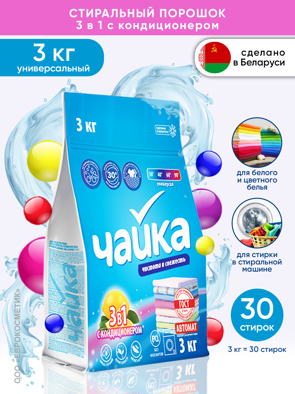 Стиральный порошок Чайка для детского белья, производство Белоруссии, стирка одежды, отзывы, обзор