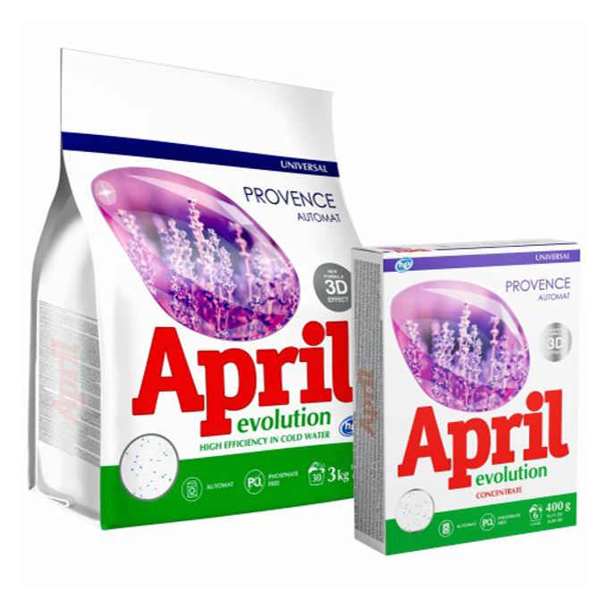 Выбирайте порошок Април согласно ваших нужд и типа загрязнений: универсальный, для цветного или белого белья.