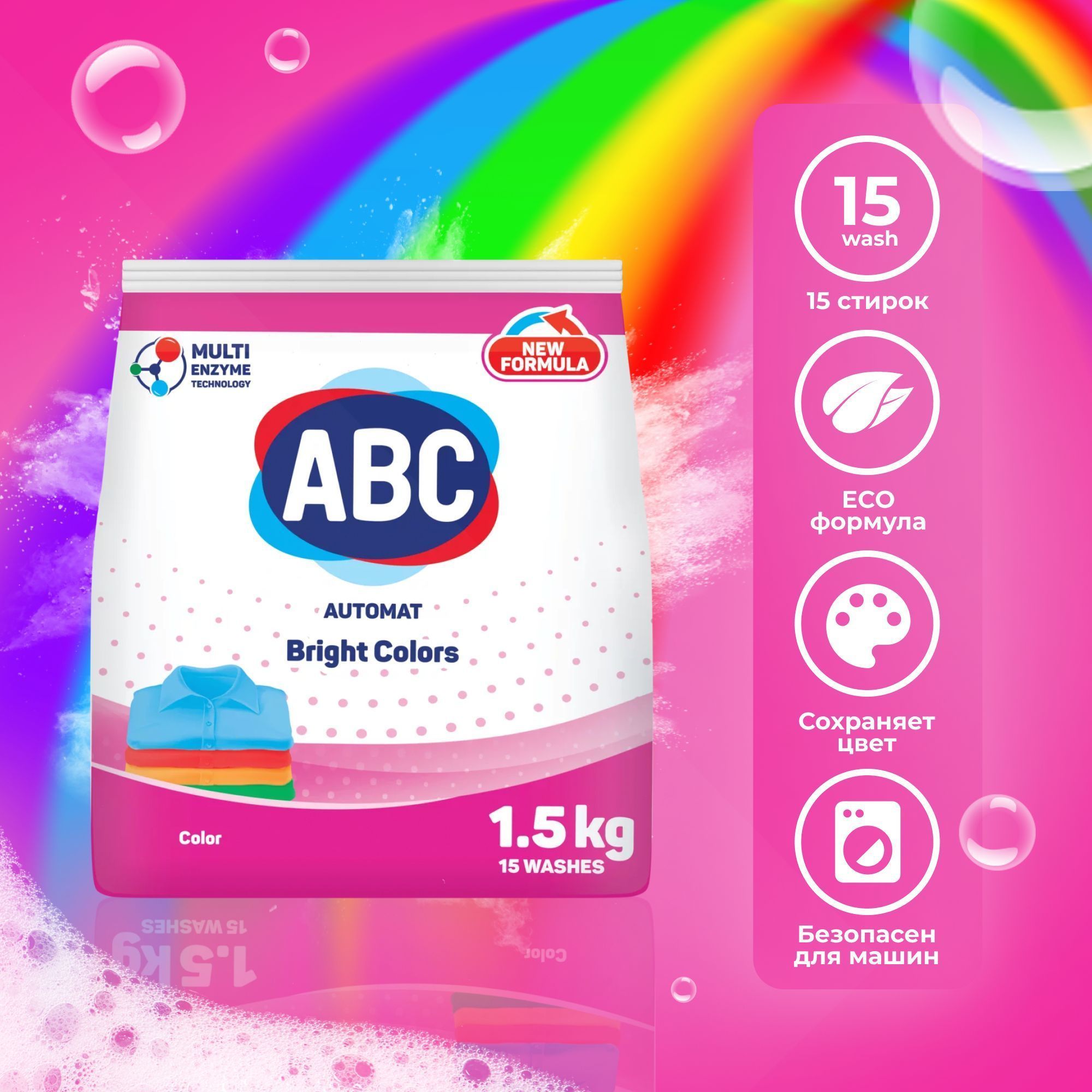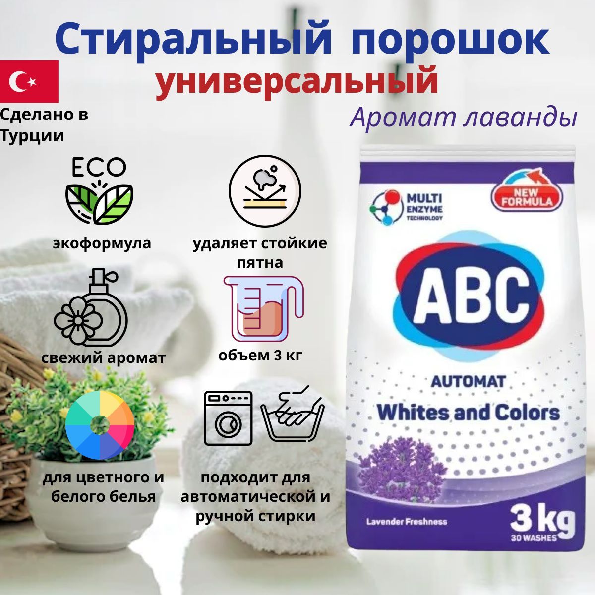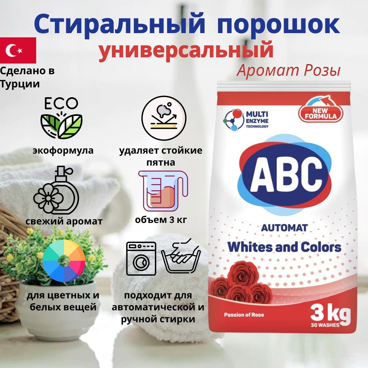 Для эффективной стирки с порошком АВС Турция, следуйте инструкциям по применению, указанным на упаковке.