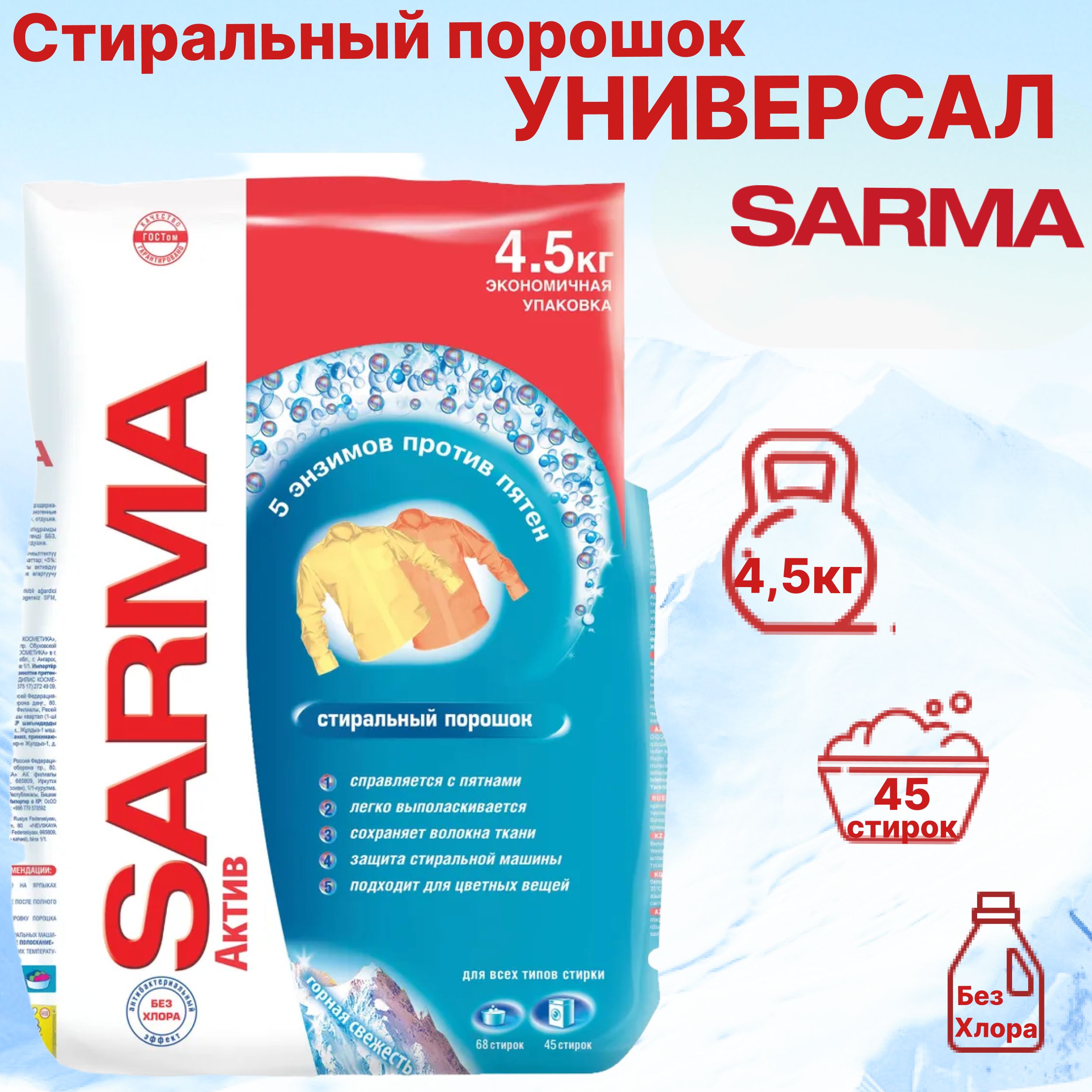 Стиральный порошок Сарма Актив Горная свежесть_Демонстрация эффективности