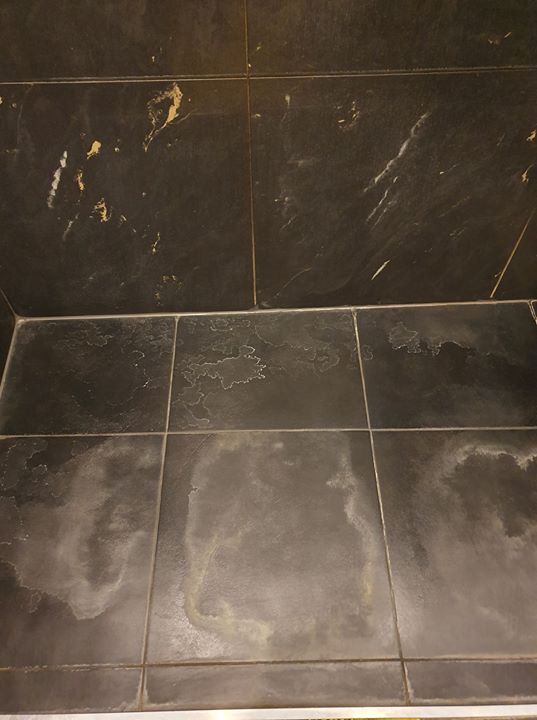 Удаляю следы алюминия с кафельной плитки.