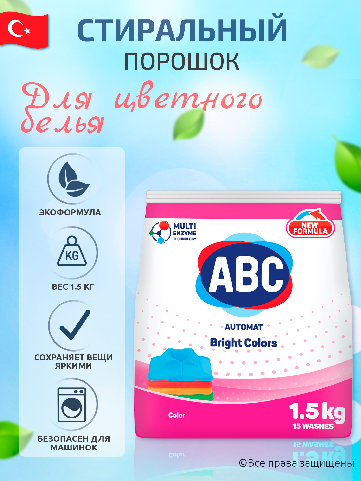 Следуйте указаниям на упаковке, чтобы достичь наилучших результатов от стирки с ABC.