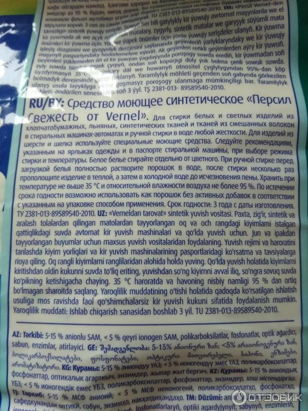 После использования стирального порошка «Свежесть от Вернель Персил», тщательно закройте его упаковку или контейнер, чтобы предотвратить попадание влаги и сохранить его свежесть.