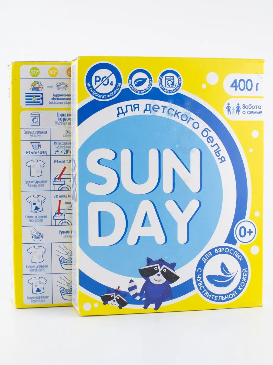 Если у вашего ребенка есть аллергические реакции на стиральный порошок Sunday для детей, прекратите его использование и проконсультируйтесь с врачом.