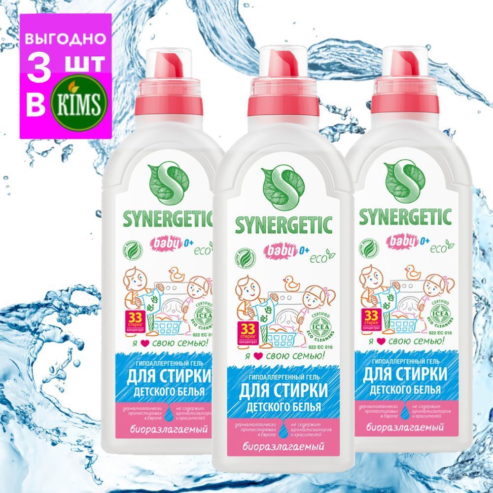 Эко гель для стирки детского белья Synergetic, хорошо ли отстирывает, - состав, отзывы, обзор, цена