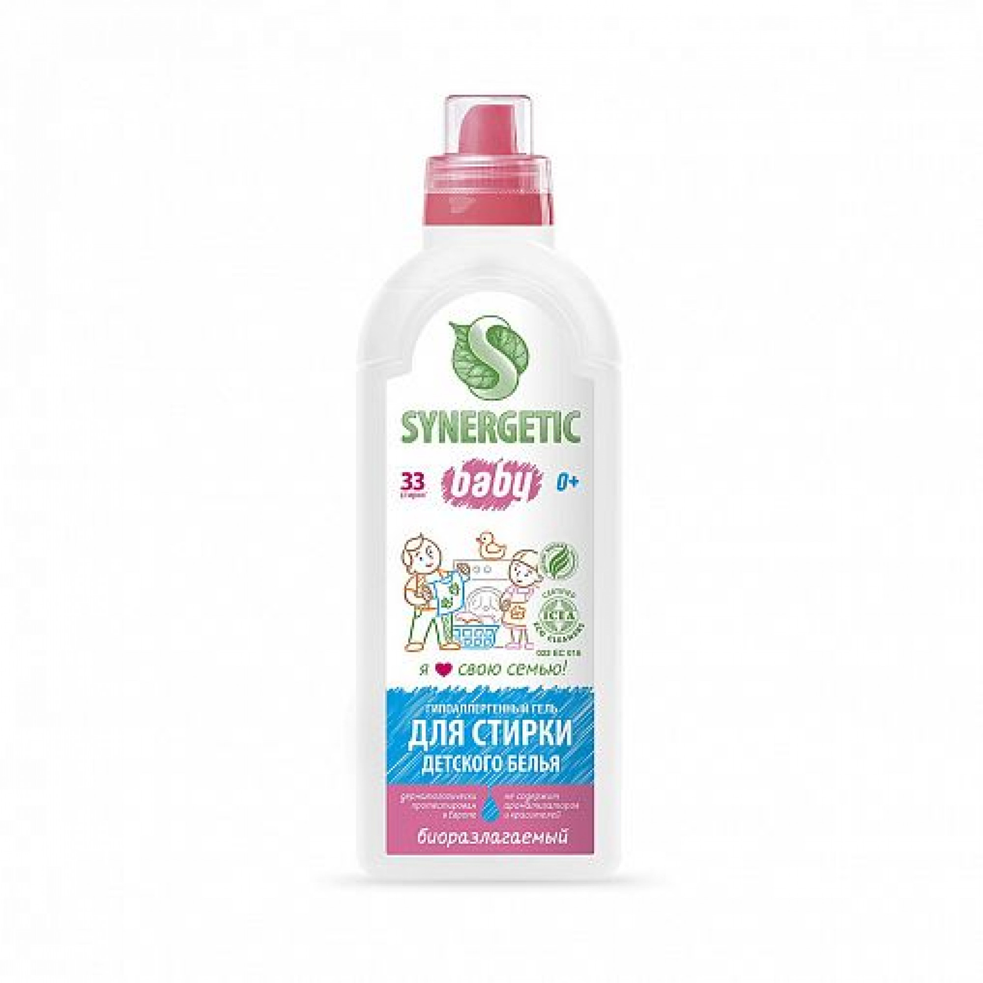 Рекомендуется использовать гель Synergetic для стирки детского белья только в соответствии с инструкцией на упаковке.