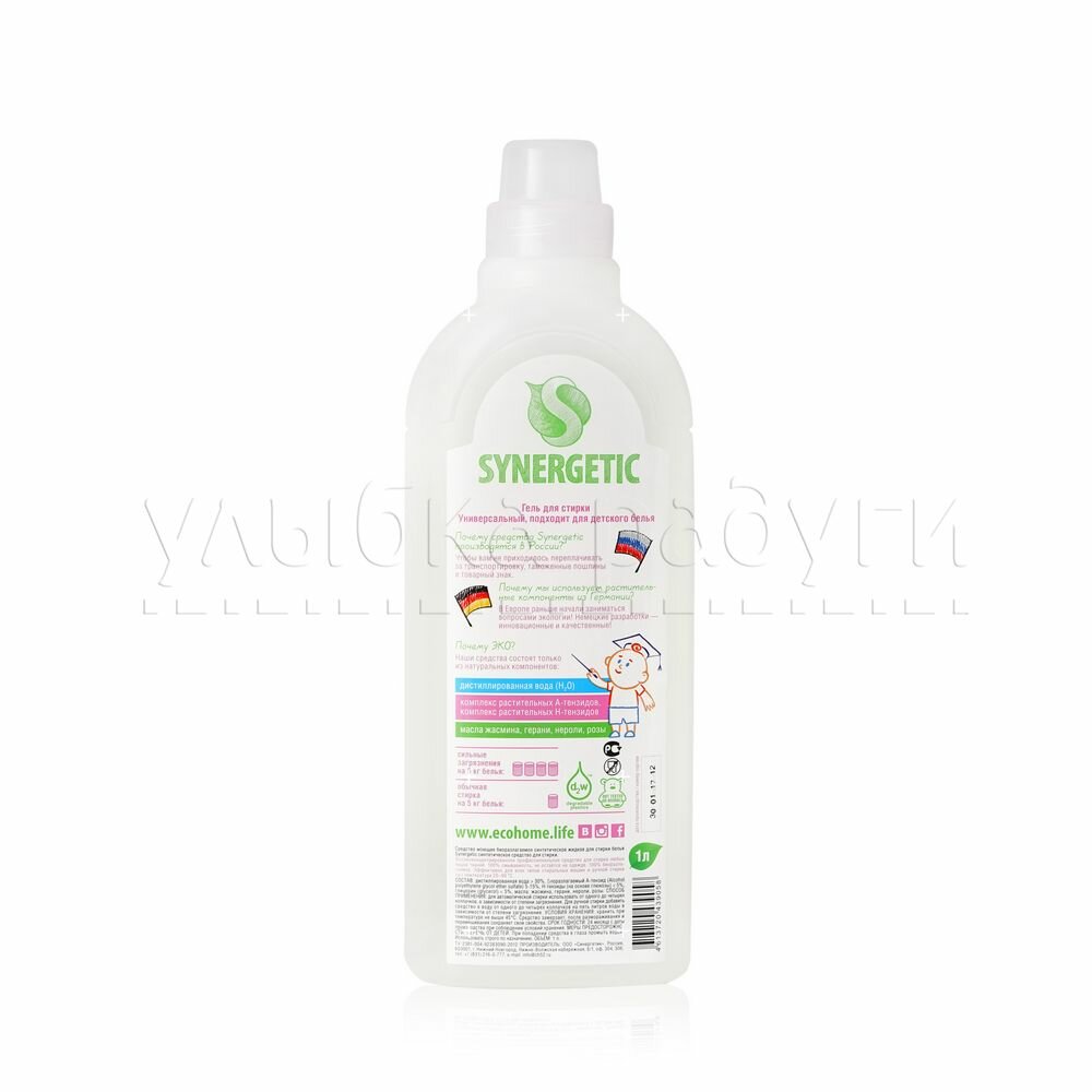 Сохраняйте гель для стирки Synergetic в недоступном для детей месте. Не используйте продукт, если у вас есть аллергическая реакция на его компоненты.
