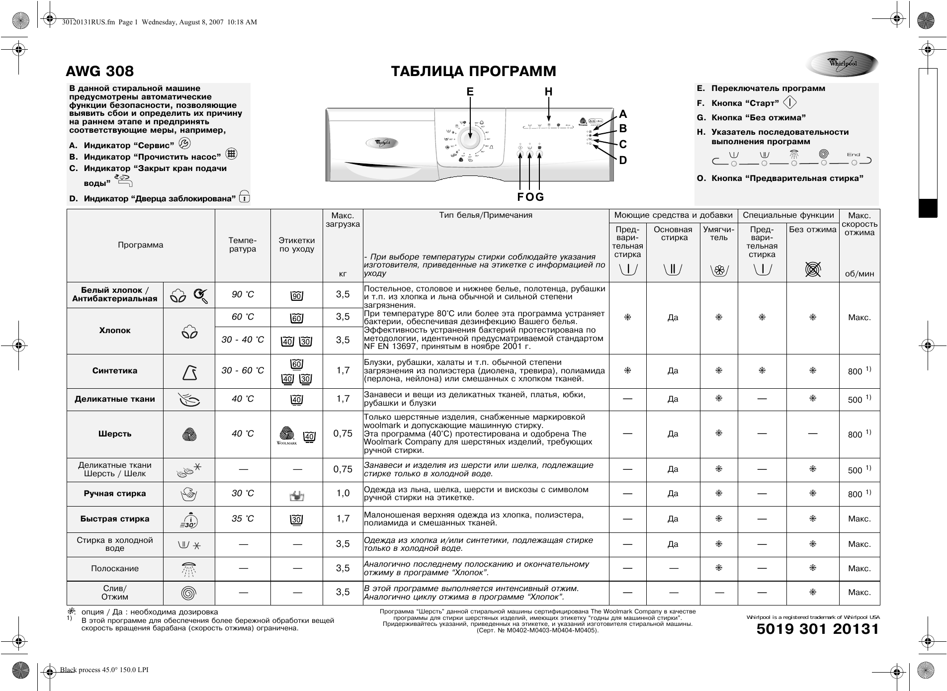 WHIRLPOOL TDLR 60210 Обзор, описание.