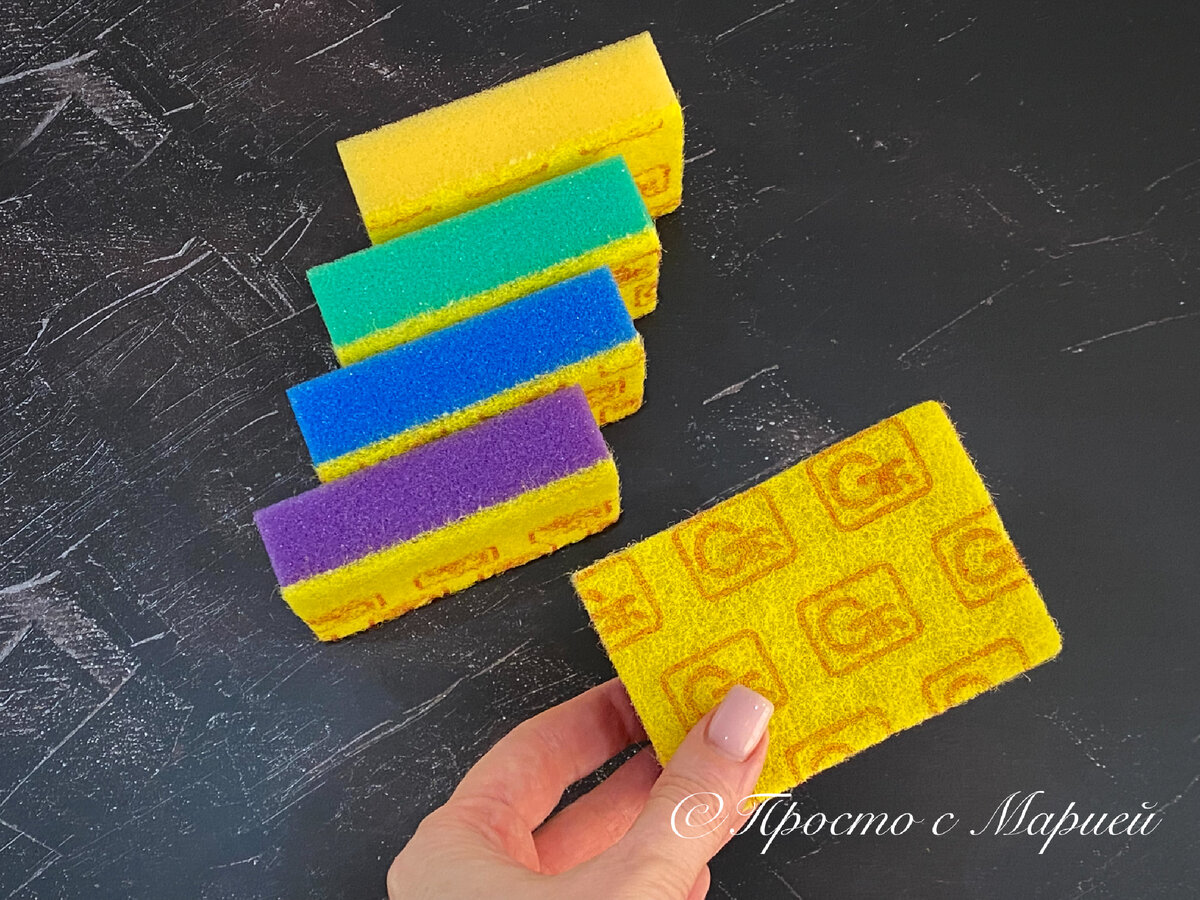 Соблюдайте аккуратность и осторожность при использовании абразивной стороны губки, чтобы не повредить себя или окружающие поверхности.