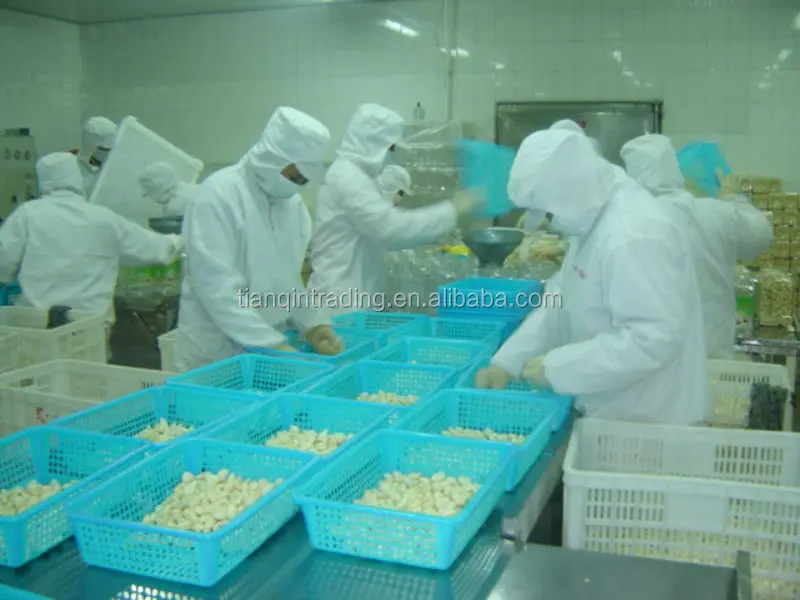 Упаковка очищенного свежего чеснока в вакуумный пакет на вакуумном упаковщике DZ с большой камерой
