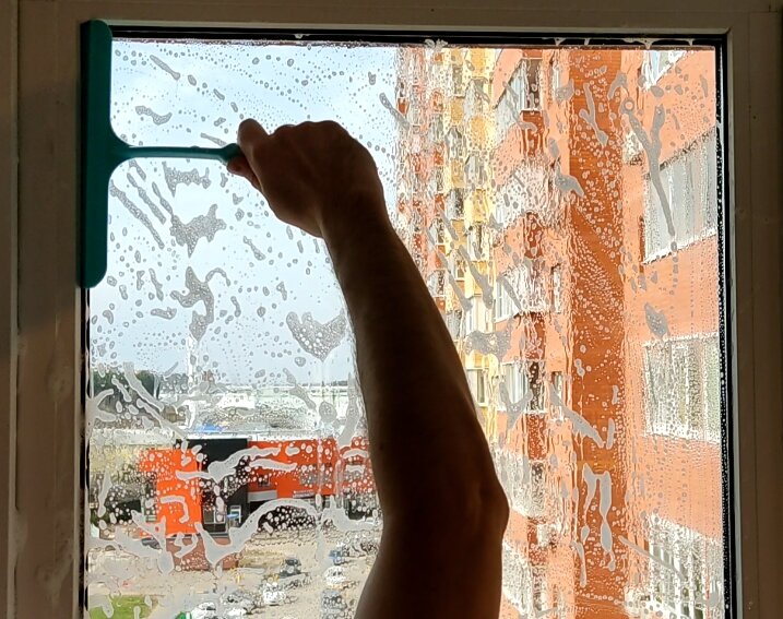 Мойте окна в прохладное время дня, чтобы избежать быстрого высыхания моющего средства и появления разводов.