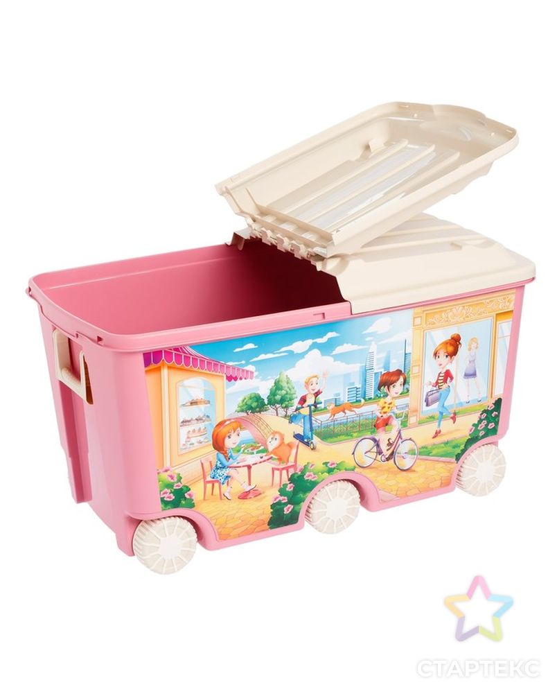 Практичный пластиковый контейнер на колесах для хранения игрушек