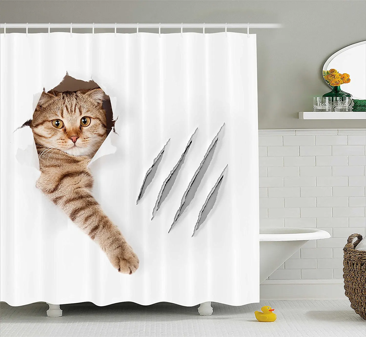 Выберите шторку для ванной с прочной основой, которая выдержит вес вашего кота.